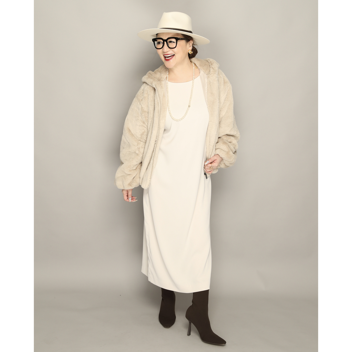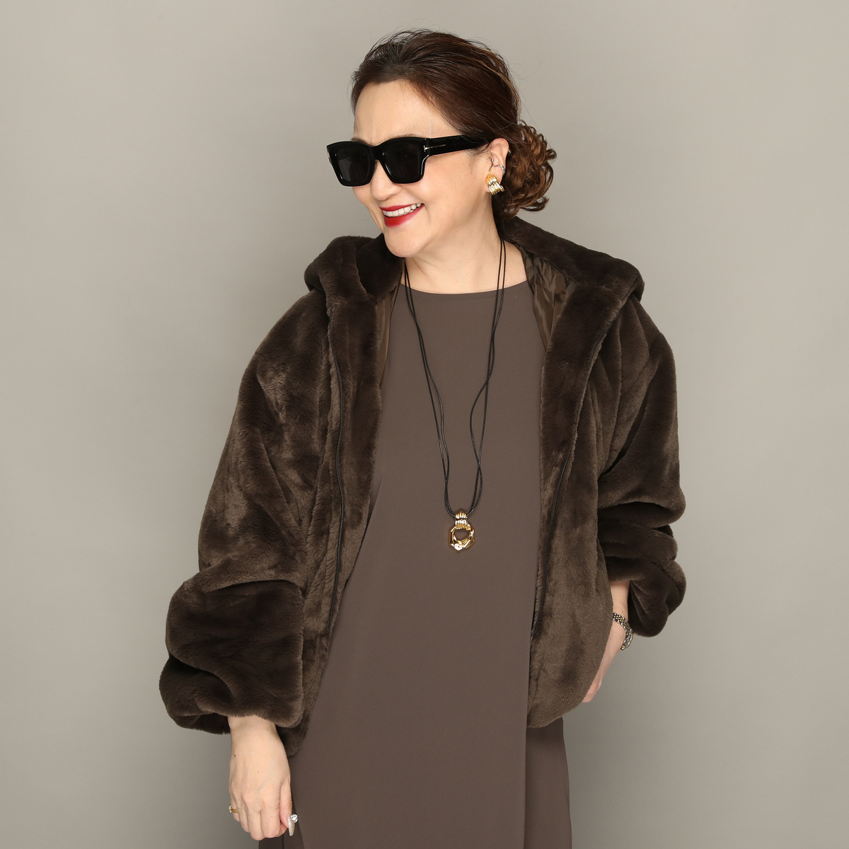 No.734940 Anne Coquine【 ミンクタッチフェイクファーフーデッドブルゾン 】